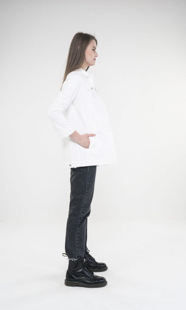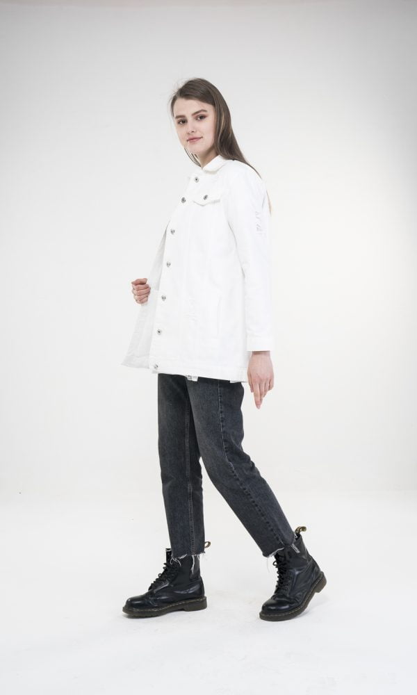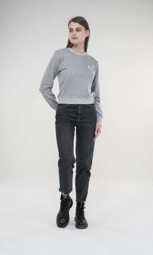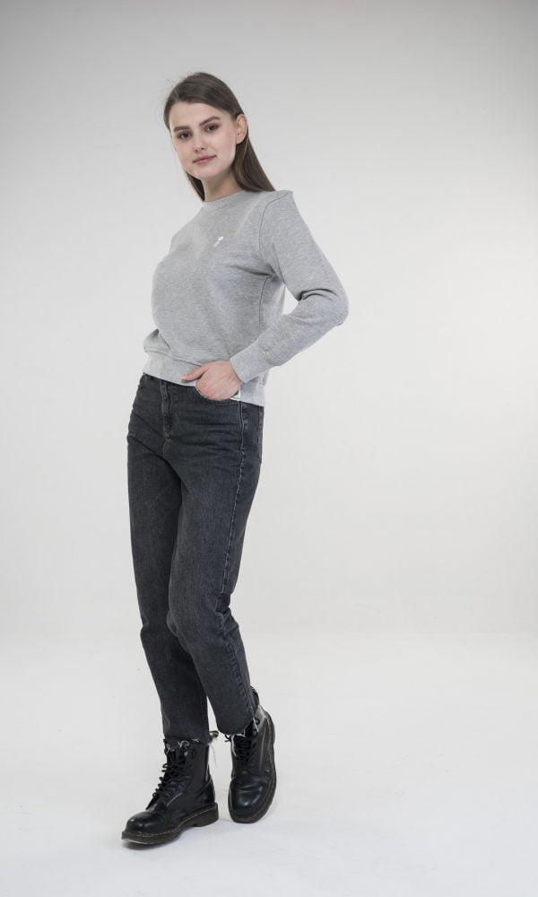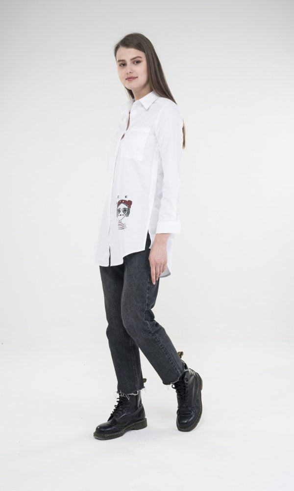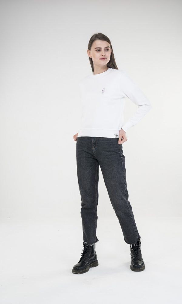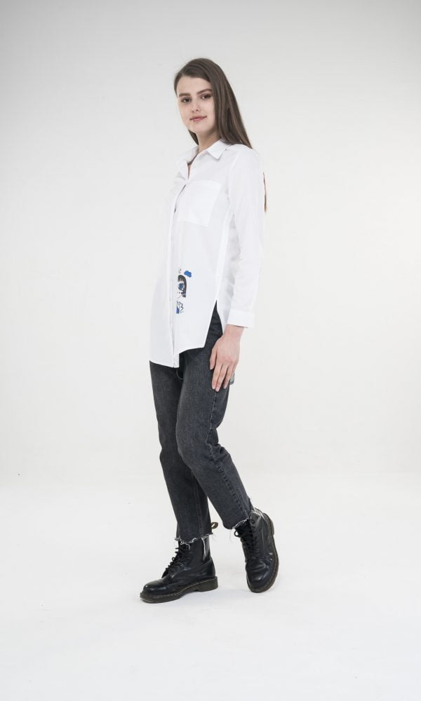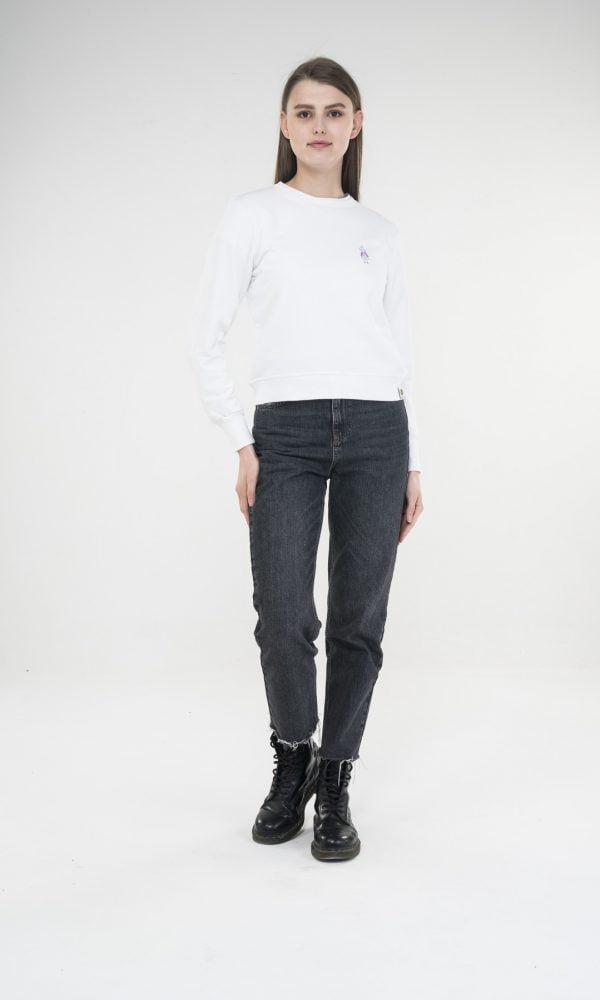Uzun kollu Arka baskılı Mavi bulutlara hayran başında kelebekler uçuşan kadın desen baskı Göğüste küçük melek baskı % 100 Cotton Model 175 cm ve S beden giymektedir.