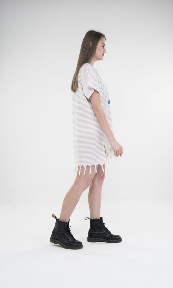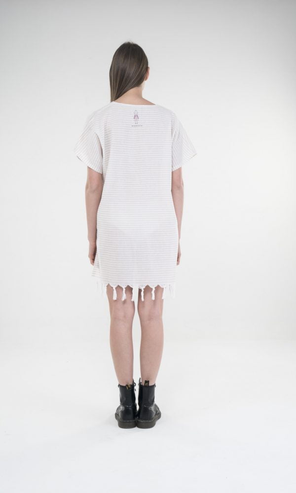 % 100 Cotton Ön kenarda desen baskı Kırmızı bandanası ile tatil hayal eden çizgili t-shirt ile özgür kadın desen Arkada minik melek desen baskı Model 175cm S beden giymektedir.