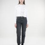 Uzun kollu Saçlarına çiçek takıp sanat seven romantik kadın desen baskı Uzun jean ceket Arka baskılı Ensede küçük melek baskı % 100 Cotton Model 175 cm ve S beden giymektedir.