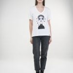 V yaka Kısa kollu Ön baskılı Ensede küçük melek baskı % 100 Cotton Model 175 cm ve S beden giymektedir
